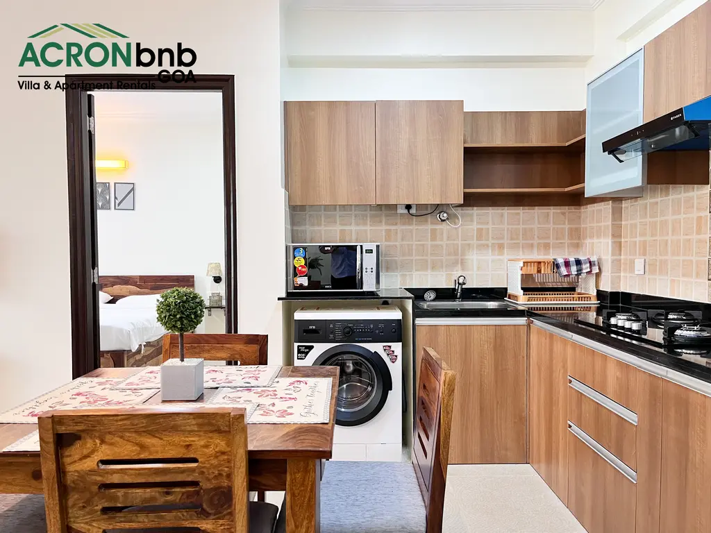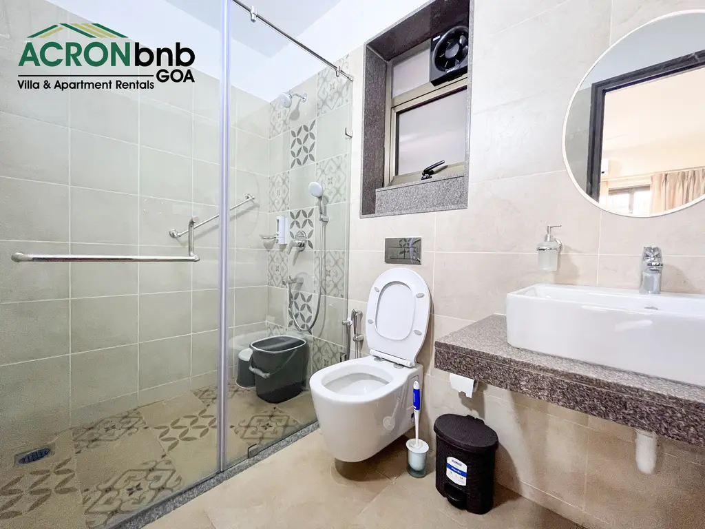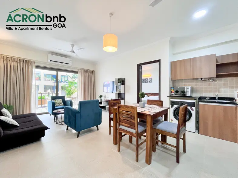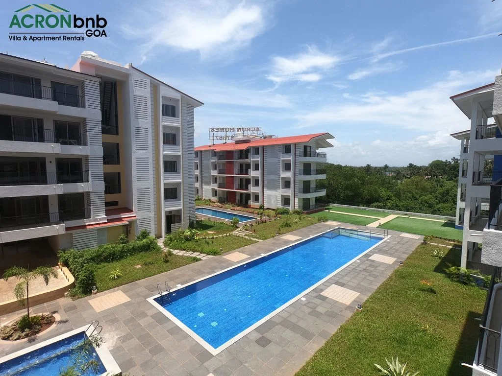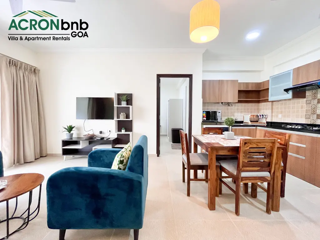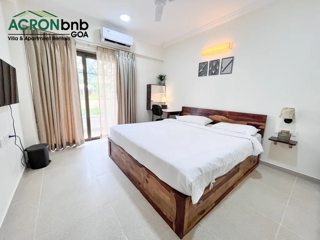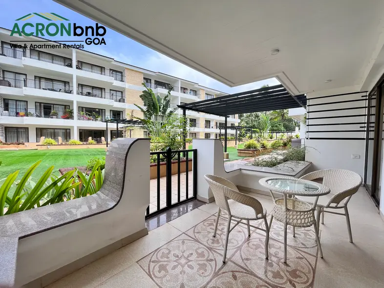 This tranquil haven in the heart of Calangute is a stone’s throw from Calangute Beach. It shares close proximity to many popular eateries, clubs, & supermarkets! It is set in a 24-hour secure gated community that houses 2 large swimming pools, a gym, a steam & sauna room, a yoga room, an outdoor Jacuzzi, & lush gardens! The private 1 BHK Apartment features 1 double bed, split air-conditioner, ensuite bathroom, flat-screen TV, kitchenette, closet space & attached balcony with outdoor seating!